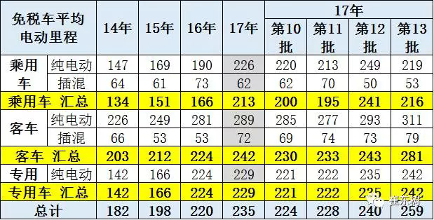 近期純電動(dòng)乘用車的里程相對較高,但第13批相對稍低。12批中的純電動(dòng)乘用車達(dá)到249公里,13純電動(dòng)乘用車達(dá)到219公里,體現(xiàn)乘用車的微型化特征。專用車達(dá)到242公里。