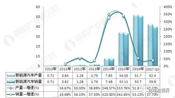 在全球節(jié)約資源、綠色經(jīng)濟發(fā)展背景下,新能源汽車發(fā)展迅速,充電樁作為新能源汽車的動力保障應(yīng)與新能源汽車的發(fā)展一致,加快行業(yè)的布局建設(shè)。2015年我國新能源汽車產(chǎn)銷量呈現(xiàn)爆發(fā)式增加,2016年規(guī)模進一步擴大,當(dāng)年新能源汽車的產(chǎn)銷量分別為51.7萬輛和50.7萬輛。2017年1-9月,新能源汽車產(chǎn)銷量分別為42.4萬輛和39.8萬輛,同比分別增長40.2%和37.7%。如此大規(guī)模的新能源汽車的市場需求使得充電樁的加速布局成為必然。