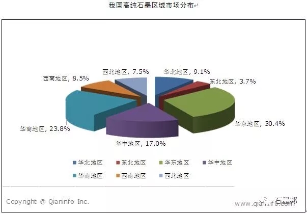 中國(guó)儲(chǔ)能網(wǎng)訊:我國(guó)高純石墨的需求市場(chǎng)分布情況與下游應(yīng)用領(lǐng)域的分布情況有關(guān),目前市場(chǎng)占比最大的是華東地區(qū),市場(chǎng)占比為30.4%,其次是華南地區(qū),市場(chǎng)占比為23.8%,華中地區(qū)市場(chǎng)占比為17%,華北地區(qū)市場(chǎng)占比為9.1%,東北、西南、西北地區(qū)占比較少,分別為3.7%、8.5%和7.5%。