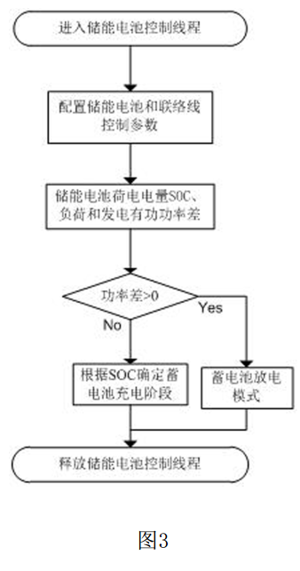 微電網(wǎng)控制的核心在于儲(chǔ)能系統(tǒng)的控制,儲(chǔ)能系統(tǒng)為電網(wǎng)提供可靠的頻率和電壓支撐,可以靈活根據(jù)系統(tǒng)的狀況調(diào)節(jié)功率平衡,提高穩(wěn)定性和經(jīng)濟(jì)效益。然而儲(chǔ)能電池本身的控制模式也受到其自身性能的影響和制約,本專利申請(qǐng)?zhí)峁┮环N微電網(wǎng)中儲(chǔ)能電池系統(tǒng)的控制方法,包括步驟:1)建立微電網(wǎng)系統(tǒng),配置儲(chǔ)能電池和通過聯(lián)絡(luò)線連接的負(fù)荷的控制參數(shù);2)測(cè)量儲(chǔ)能電池的荷電電量SOC,并計(jì)算負(fù)荷有功功率與間歇性電源最大發(fā)電有功功率之間的功率差;3)如果負(fù)荷有功功率和間歇性電源最大發(fā)電有功功率之間的功率差大于零,則儲(chǔ)能電池工作在放電模式;如果負(fù)荷有功功率和間歇性電源最大發(fā)電有功功率之間
