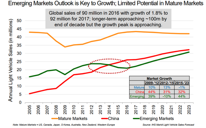 然而,進一步來看,特斯拉對中國的需要可能要大于中國對特斯拉的需要。根據(jù)IHS Markit發(fā)布的輕型車銷量預(yù)測圖表顯示,中國對全球車企來說都是“必爭之地”。中國于2009年超過美國一舉成為全球第一大汽車市場。西方國家市場的汽車銷量預(yù)測則呈下降趨勢,而新興市場則將引領(lǐng)全球汽車市場增長。