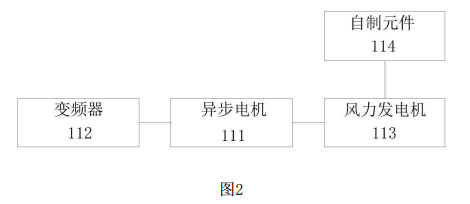 進(jìn)一步地,所述風(fēng)力發(fā)電單元還包括變頻器,所述變頻器分別與所述異步電機(jī)和所述控制單元連接;