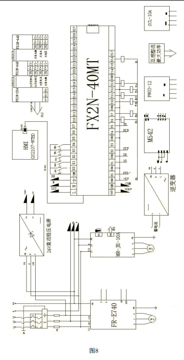 可選地,在本實(shí)施例中,所述微電網(wǎng)控制裝置100還包括逆變器、變壓器以及繼電器。所述繼電器為多個(gè),多個(gè)所述繼電器分別與所述風(fēng)力發(fā)電單元110的輸出端、所述光伏發(fā)電單元130的輸出端以及所述市網(wǎng)系統(tǒng)的輸出端連接,所述多個(gè)繼電器的另一端分別與所述逆變器連接,所述逆變器與所述變壓器連接,所述變壓器與外部負(fù)載連接。本實(shí)施例中,所述逆變器的型號(hào)為1200W,所述變壓器的型號(hào)為HS-35-24,所述繼電器的型號(hào)為DRM270024LT。本發(fā)明實(shí)施例提供的所述微電網(wǎng)控制裝置100的電氣原理圖如圖8所示。