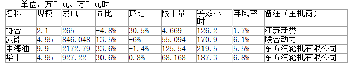 各風電場10月份發(fā)電量
