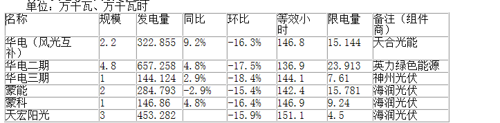 各光伏電場10月份發(fā)電量