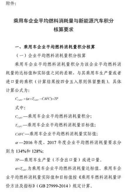 此外,工業(yè)和信息化部、財政部、商務部、海關(guān)總署、質(zhì)檢總局新發(fā)布了《乘用車企業(yè)平均燃料消耗量與新能源汽車積分并行管理辦法》,對乘用車企業(yè)2016年度、2017年度平均燃料消耗量和新能源汽車積分的實施核算,并具體列明了方程式,需要各大新能源汽車企業(yè)注意!