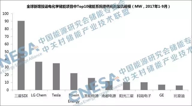 2、排名標準:以“全球儲能項目數(shù)據(jù)庫”為基礎、以公開項目信息和企業(yè)自主提報項目信息為依據(jù)、按照企業(yè)2017年前三季度在全球新增累計投運項目的裝機規(guī)模(MW)進行排名