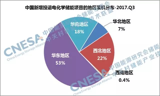2017年第三季度,全球新增投運電化學儲能項目的裝機規(guī)模為94.4MW,同比增長551%,環(huán)比增長50%。