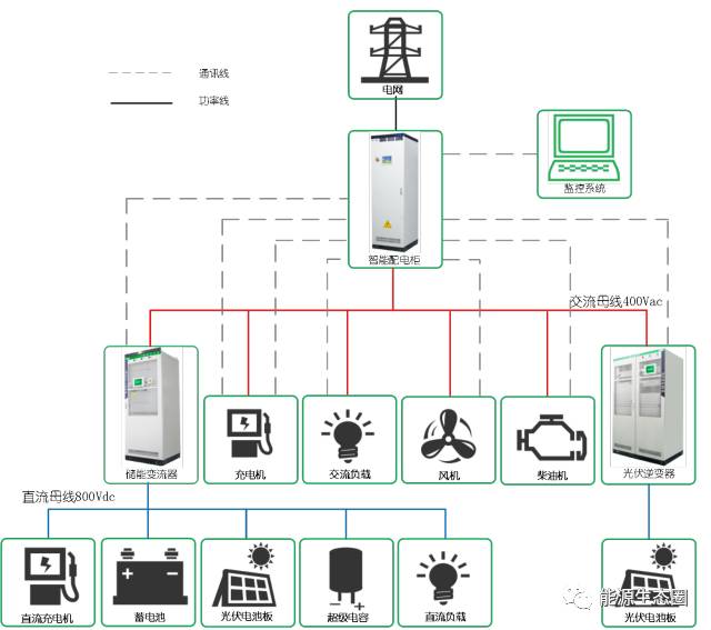 交流微網(wǎng)的特點(diǎn):1、交流微網(wǎng)的系統(tǒng)設(shè)計(jì)可支持并網(wǎng)運(yùn)行,也可脫離電網(wǎng)運(yùn)行。2、整個(gè)系統(tǒng)接入功率范圍大,設(shè)計(jì)比較靈活,可接入光伏能源、風(fēng)力發(fā)電、超級電容及其他類型的儲能電池系統(tǒng)。3、支持梯次電池的應(yīng)用,電池接入多分支,減少電池組并聯(lián)。4、整個(gè)交流系統(tǒng)微網(wǎng)可以做成實(shí)現(xiàn)光伏、儲能、電池一體化的集裝箱設(shè)計(jì)方案。在容量比較小的場合,儲能電池占的面積比較大,如果系統(tǒng)裝置放在某個(gè)特定區(qū)域沒有空間的時(shí)候,可以加個(gè)集裝箱放在戶外,整體打包。