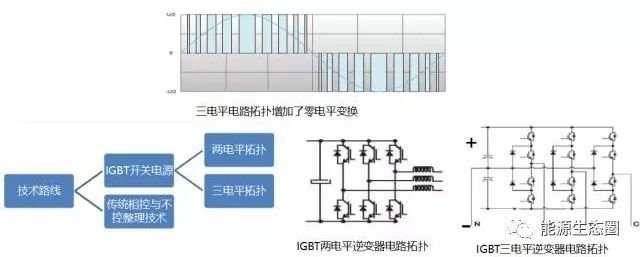 3、采用高效的三電平拓?fù)浼夹g(shù),增加零電平變換,IGBT耐壓為兩電平一半,開關(guān)損耗??;三電平具有更高開關(guān)頻率,輸出濾波電感減?。蝗娖蕉嘁粚与A梯電壓,輸出電流波形更接近正弦波,諧波含量小,功率因數(shù)0.99。功率因素方面,從-1到1是可以隨意調(diào)節(jié)的。