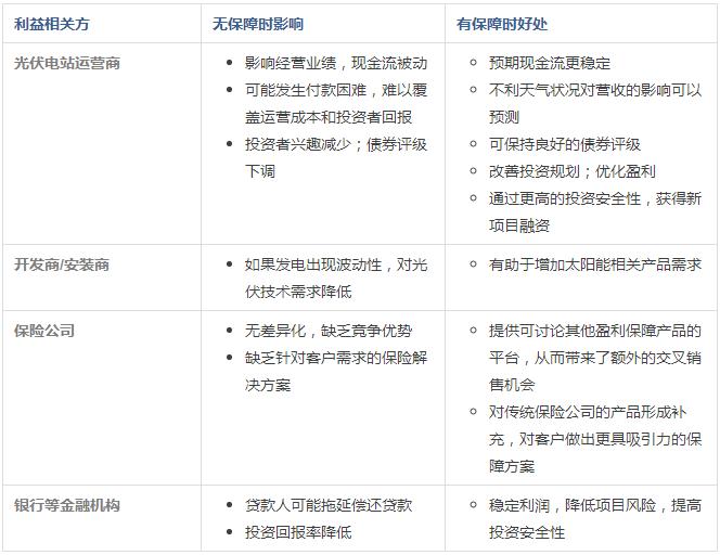 他表示,這是基于細(xì)分市場的創(chuàng)新型產(chǎn)品,開發(fā)光伏發(fā)電量相關(guān)的保險(xiǎn)項(xiàng)目能為相關(guān)利益主體分散風(fēng)險(xiǎn),提高競爭力。有了保險(xiǎn)兜底,企業(yè)能交出良好的財(cái)務(wù)成績單,提高業(yè)務(wù)拓展優(yōu)勢,無后顧之憂。