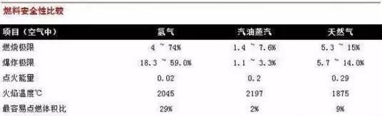 燃料電池由于原料氫氣易燃易爆,市場普遍擔(dān)心其安全性問題。但如下表的數(shù)據(jù):