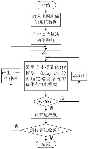 綜合目前國(guó)內(nèi)外開(kāi)展的分布式儲(chǔ)能系統(tǒng)的優(yōu)化規(guī)劃方面的研究,大多建立以技術(shù)性或經(jīng)濟(jì)性或技術(shù)與經(jīng)濟(jì)性綜合目標(biāo)的目標(biāo)函數(shù),在儲(chǔ)能本身和系統(tǒng)運(yùn)行的約束條件下開(kāi)展尋優(yōu)求解,目標(biāo)函數(shù)一般可綜合為單目標(biāo)優(yōu)化,約束條件包含等式約束和不等式約束,針對(duì)該優(yōu)化求解問(wèn)題也開(kāi)展了較多研究,多采用智能求解算法進(jìn)行求解,比如遺傳算法。