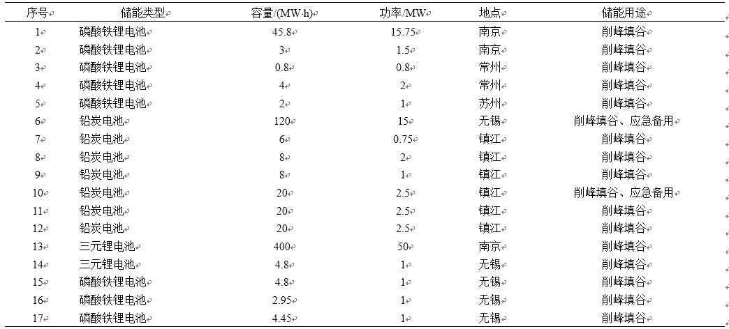 表1 江蘇省2017年用戶側(cè)儲(chǔ)能規(guī)劃建設(shè)情況(容量1 MW以上)