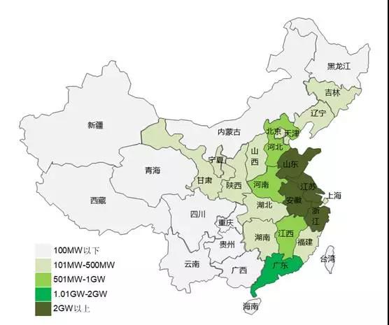截止2017年上半年各省分布式光伏電站累計裝機(jī)情況