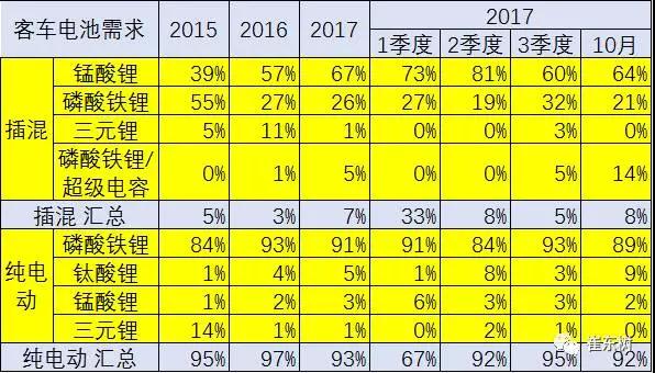 客車電池以磷酸鐵鋰為主,但占比不高,錳酸鋰、超級(jí)電容的產(chǎn)比也有一定的市場(chǎng)空間。