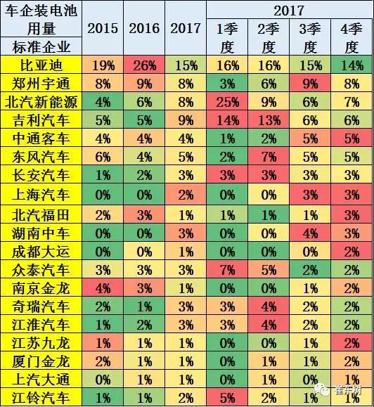 寧德時(shí)代的主力配套企業(yè)相對(duì)均勻,主要是乘用車和客車,17年的客車與乘用車比重逐步接近,未來(lái)乘用車比例在18年會(huì)高于客車。