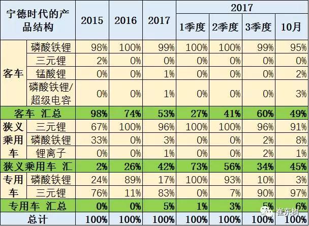 17年10月份寧德時(shí)代的產(chǎn)品結(jié)構(gòu)是磷酸鐵鋰占50%,三元占48%。還有點(diǎn)其他的產(chǎn)品,這是給湖南中車的車型配套的,準(zhǔn)確信息仍待確認(rèn)。