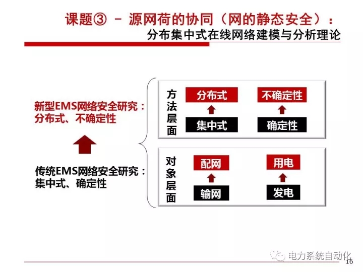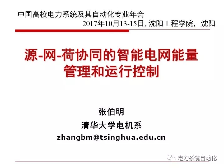 中國儲能網(wǎng)訊:中國高等學(xué)校電力系統(tǒng)及其自動化專業(yè)第33屆學(xué)術(shù)年會日前在沈陽召開,清華大學(xué)張伯明教授在會上作了題為“源—網(wǎng)—荷協(xié)同的智能電網(wǎng)能量管理和運行控制”的主旨報告。小編征得專家同意,在此分享報告PPT,歡迎品讀。