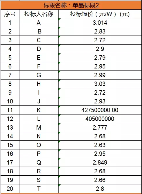 從開標(biāo)結(jié)果來看,參與單晶、多晶標(biāo)段的競爭尤為激烈,每個(gè)標(biāo)段參與企業(yè)數(shù)量都在20家及以上。