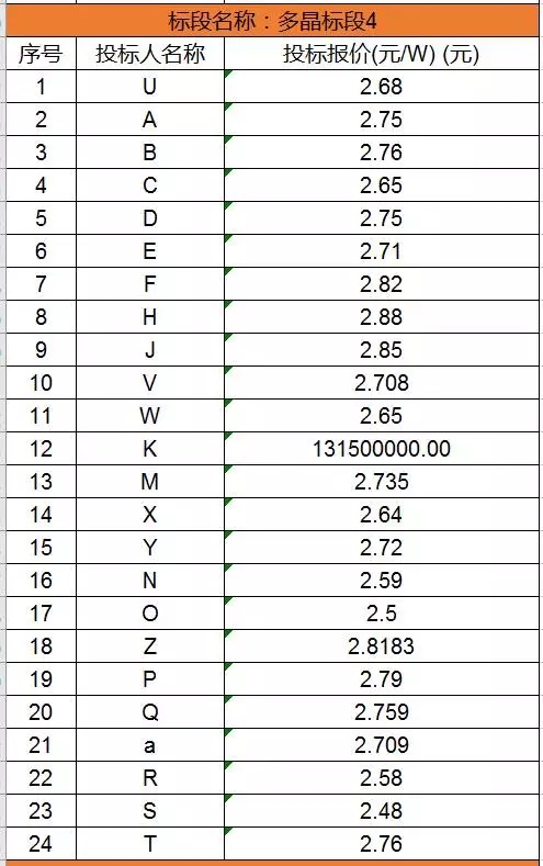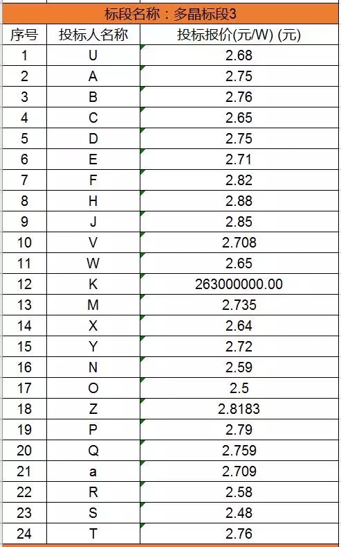 從多晶(270W及以上)的報(bào)價(jià)來看,要明顯低于單晶。其最低價(jià)格報(bào)至2.48元/瓦,大部分報(bào)價(jià)在2.6-2.8元/瓦之間。除個(gè)別極低報(bào)價(jià)之外,此次開標(biāo)價(jià)格并未低于當(dāng)前市場價(jià)格太多。