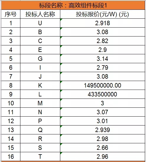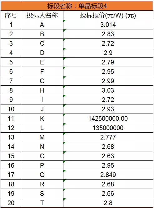 高效組件(單晶295W及以上)以及雙面雙玻(單晶正面295W及以上)標(biāo)段的參與企業(yè)數(shù)量明顯較少,其價(jià)格也要明顯高于上述普遍單多晶標(biāo)段。其中,高效組件兩個(gè)標(biāo)段中,最低價(jià)格報(bào)至2.66元/瓦,不過大部分價(jià)格仍然維持在2.8元/瓦以上,雙面雙玻的報(bào)價(jià)則大多在2.9元/瓦以上。