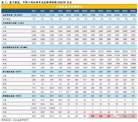 (3)2020年后火電機(jī)組停止新建,水、風(fēng)、核仍保持一定增速的情況下,缺口主要由光伏匹配;