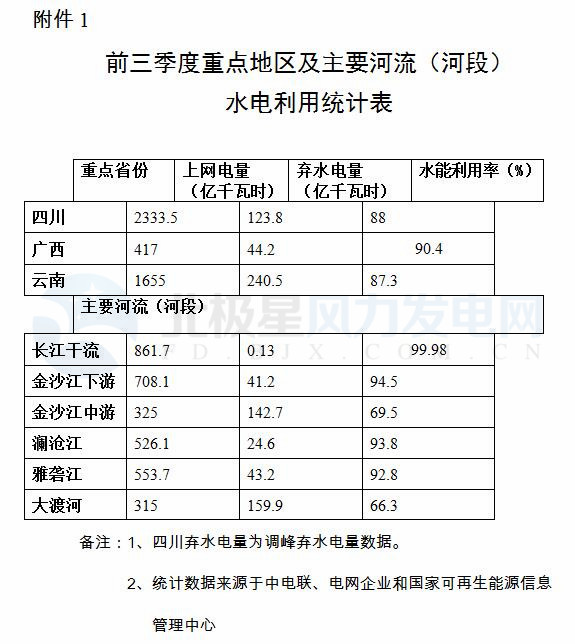 附件:1.前三季度重點(diǎn)地區(qū)及主要河流(河段)水電利用統(tǒng)計表