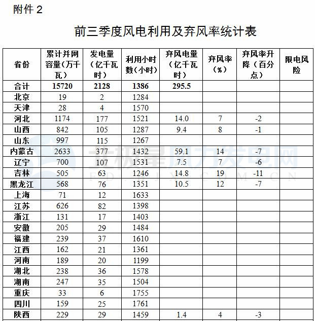 2.前三季度風(fēng)電利用及棄風(fēng)率統(tǒng)計表