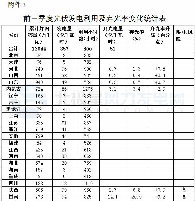 附件3.前三季度光伏發(fā)電利用及棄光率統(tǒng)計表