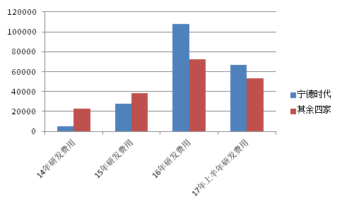 寧德時代與其余四家公司研發(fā)費用的比較情況