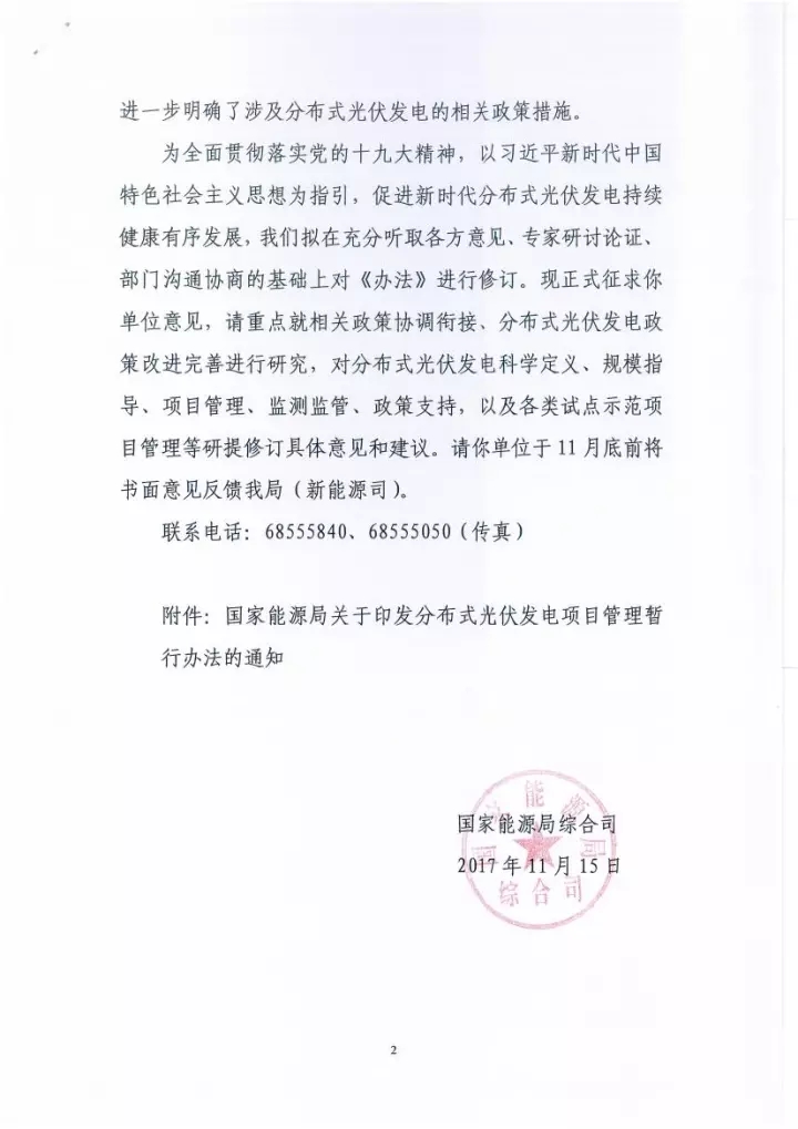 中國儲能網(wǎng)訊:今日,國家能源局網(wǎng)站公布,國家能源局綜合司關(guān)于征求《分布式光伏發(fā)電項目管理暫行辦法》修訂意見的函。