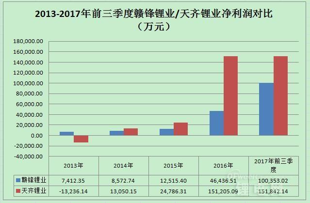 從2017年前三季度的凈利潤來看,兩者表現(xiàn)都非常好,對(duì)于業(yè)績大幅增長,贛鋒鋰業(yè)稱,主要是由于下游鋰電池市場需求旺盛,上游的電池材料行業(yè)帶動(dòng)鋰化工產(chǎn)品需求快速增長所致。對(duì)于業(yè)績變動(dòng)的原因,天齊鋰業(yè)稱,主要系鋰礦量價(jià)齊升和鋰化工品銷量增長所致。在凈利潤增長方面,贛鋒鋰業(yè)增長得比較快,2017年全年及未來,贛鋒鋰業(yè)能否超越天齊鋰業(yè)呢?
