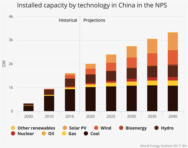 到2040年,預(yù)計中國將增加的發(fā)電量相當(dāng)于整個美國電力系統(tǒng)的發(fā)電量。國際能源機構(gòu)預(yù)計,根據(jù)目前的政策,中國的煤炭消費量在未來幾年將達(dá)到高峰,到2040年將下降15%。中國的電動車投資也將占全球的40%以上。