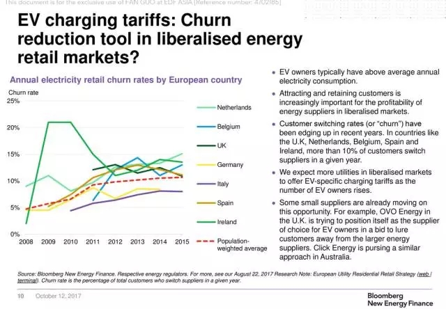 更重要的是,電動汽車家庭每年的用電量普遍更高,在自由的電力市場中,電廠更要想辦法留住這些客戶。在英國、荷蘭、比利時、西班牙和愛爾蘭等國家,每年更換電力供應(yīng)商的用戶比例超過了10%。OVO Energy已經(jīng)在一項競標(biāo)中將自身定位為電動汽車用戶的首選電力供應(yīng)商,雄心勃勃準(zhǔn)備干掉那些大型能源企業(yè)。