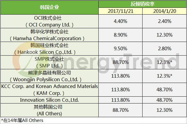 2014 年 1 月 20 日,中華人民共和國(guó)商務(wù)部公布了《關(guān)于對(duì)原產(chǎn)于美國(guó)和韓國(guó)的進(jìn)口太陽(yáng)能級(jí)多晶硅反傾銷調(diào)查的最終裁定的公告》(“終裁”),開(kāi)始對(duì)原產(chǎn)于韓國(guó)的進(jìn)口太陽(yáng)能級(jí)多晶硅征收反傾銷稅。