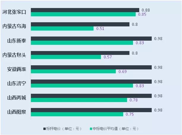 圖2. 第二批“領跑者”基地平均中標電價與當?shù)毓夥鼧藯U上網(wǎng)電價比較(標桿電價為2016年電價)