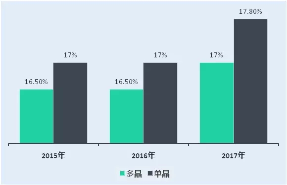 從2015年開始的光伏“領跑者”計劃從技術升級和綜合效益等環(huán)節(jié)為光伏行業(yè)帶來了深刻的影響,由于諸多優(yōu)勢成為領先的光伏企業(yè)必爭項目?!邦I跑者”計劃對光伏行業(yè)的促進作用主要反映在電價的下降和發(fā)電效率的提升兩個主要要素上,如圖2、圖3所示。同時通過系統(tǒng)技術的創(chuàng)新、智能化的管理還可以降低30%—40%左右的綜合度電成本。