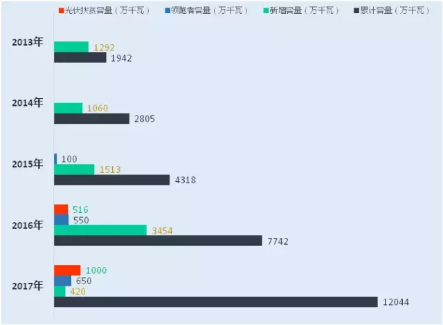 圖1. 光伏裝機容量表(其中2017年容量為1-9月份新增)