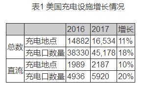美國(guó)的充電設(shè)施發(fā)展比較平穩(wěn),2017年的數(shù)量比2016年增長(zhǎng)了10%以上。