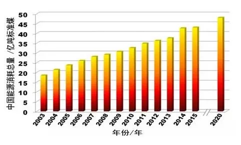 2003年18億噸標(biāo)準煤,2012年36億噸,2015年達到43億噸,2020年將達到48億噸,其中煤炭力爭控制在42億噸。