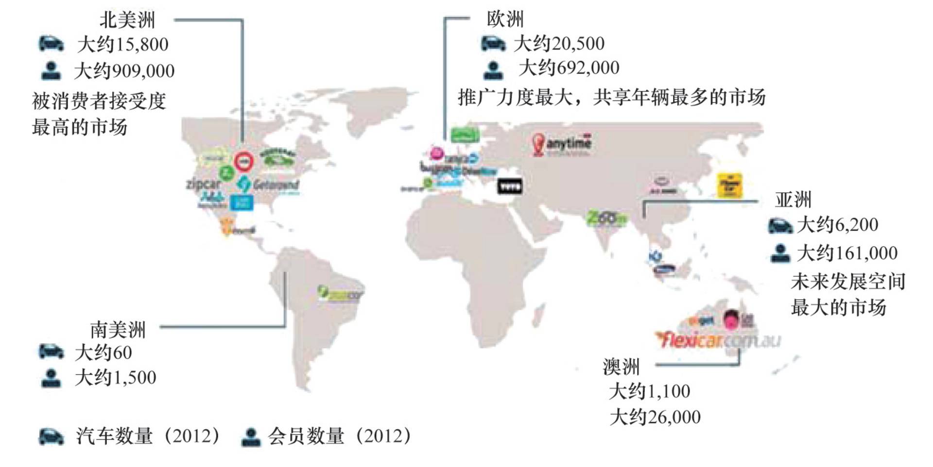 圖 1 2012 年全球汽車共享車輛和會員數(shù)量分布