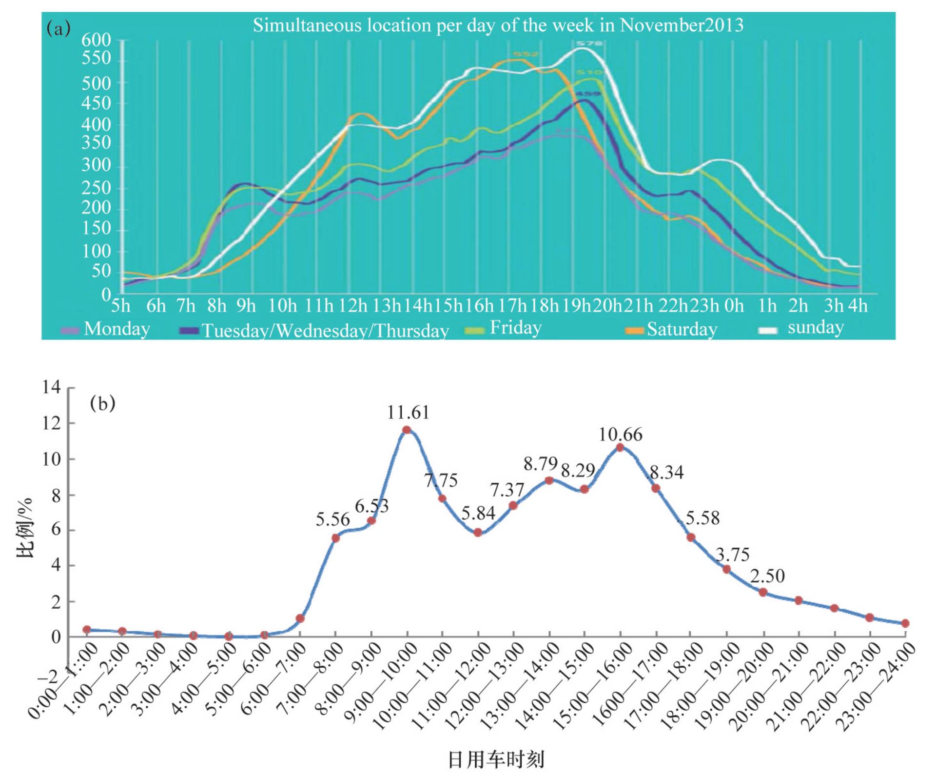 圖 8 AUTOLIB(a)和 EVCARD(b)日用車時間分布