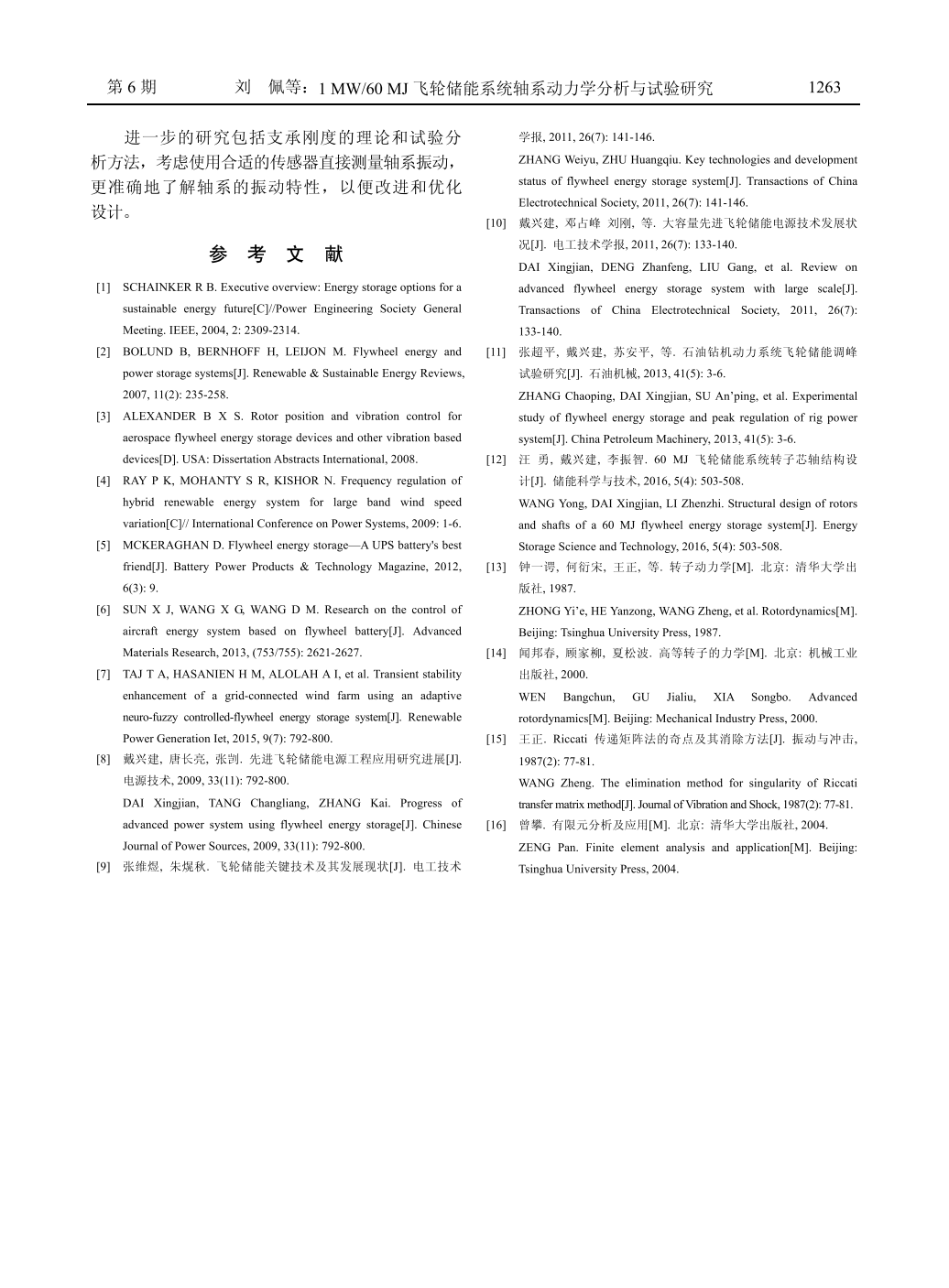 中國儲能網訊:飛輪儲能技術是通過電動/發(fā)電機將飛輪機械能與電能相互轉化的技術,具有充電時間短、響應速度快、能量密度較高、使用壽命長、環(huán)保無污染等優(yōu)點。隨著高強度復合材料、大功率電動/發(fā)電機、磁懸浮、真空和電力電子等技術的發(fā)展,飛輪儲能技術目前已經在電網調頻、電能質量控制、衛(wèi)星儲能/姿控、車輛制動能量回收、不間斷電源和高功率脈沖電源等領域獲得了廣泛的應用。近年來我國在飛輪儲能關鍵技術方面有所突破,部分大學和科研機構已經完成飛輪儲能系統(tǒng)試驗裝置或工程樣機的研制。對此,劉佩、魏鯤鵬、戴興建進行了1MW/60MJ飛輪儲能系統(tǒng)軸系動力學分析與試驗研究,下面為文章全文。