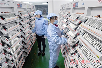 最后,2000毫安時、2600毫安時、2800毫安時三種規(guī)格的單體電芯,還要經(jīng)過測試,將性能基本一樣的組裝進一個電池模塊,進而組裝出可供新能源汽車使用的動力電池組?!艾F(xiàn)在每日產(chǎn)量是20萬支單體電芯,逐步提產(chǎn)后,我們能達到40萬支?!倍藕閺┱f。