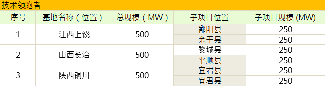 最后評(píng)選出來的基地共有13個(gè),包括10個(gè)應(yīng)用領(lǐng)跑者基地(共5GW)和3個(gè)技術(shù)領(lǐng)跑者基地(共1.5GW),清單如下: