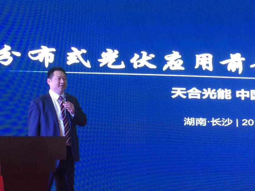 天合光能(北京)系統(tǒng)集成有限公司總經(jīng)理?xiàng)钴姟⑻旌瞎饽埽ū本┫到y(tǒng)集成有限公司湖南公司總經(jīng)理吳玉玲受邀出席。楊軍作為天合光能商用團(tuán)隊(duì)的負(fù)責(zé)人發(fā)表演講,從光伏電站的產(chǎn)品、安裝、運(yùn)維、收益、環(huán)保效應(yīng)等方面,說明專業(yè)的工業(yè)級(jí)電站對(duì)于光伏扶貧的重要意義,分享了天合商用在光伏扶貧領(lǐng)域的探索和經(jīng)驗(yàn)。