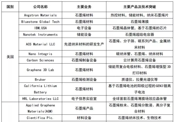 美國對石墨烯的研究投入較早,石墨烯產(chǎn)業(yè)化和應(yīng)用進程相對較快,其產(chǎn)業(yè)布局也呈現(xiàn)多元化,產(chǎn)業(yè)鏈相對比較完整,基本覆蓋了從制備及應(yīng)用研究-石墨烯產(chǎn)品生產(chǎn)-下游應(yīng)用整個環(huán)節(jié)。不僅擁有IBM、英特爾、波音等眾多研發(fā)實力強勁的大型企業(yè),還誕生了眾多小型石墨烯企業(yè)。美國國防部、國家自然科學(xué)基金也投入巨資,重點在石墨烯晶體管、能量存儲、超級電容器、晶體管等領(lǐng)域支持石墨烯產(chǎn)業(yè)研發(fā)及產(chǎn)業(yè)化。