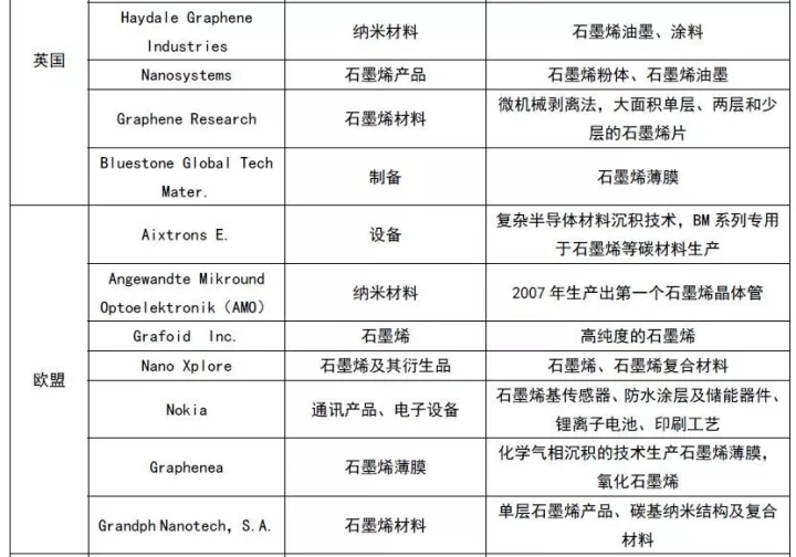 目前歐盟約有50 余家公司開展石墨烯的研發(fā)、產(chǎn)業(yè)化以及應(yīng)用的推進,不僅包括諾基亞、巴斯夫、拜耳等工業(yè)巨頭,還有眾多小型專業(yè)化石墨烯企業(yè)。產(chǎn)業(yè)分布主要集中在德國、法國、西班牙等地。