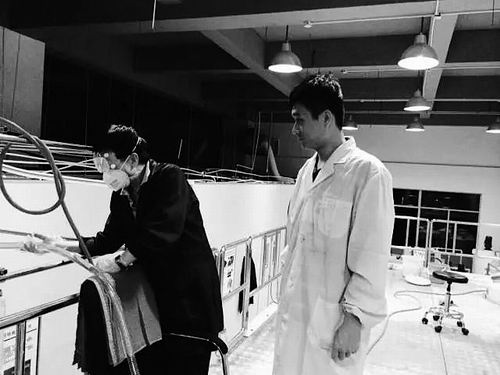 郭守武(右)與研究人員正在通宵做實驗。
